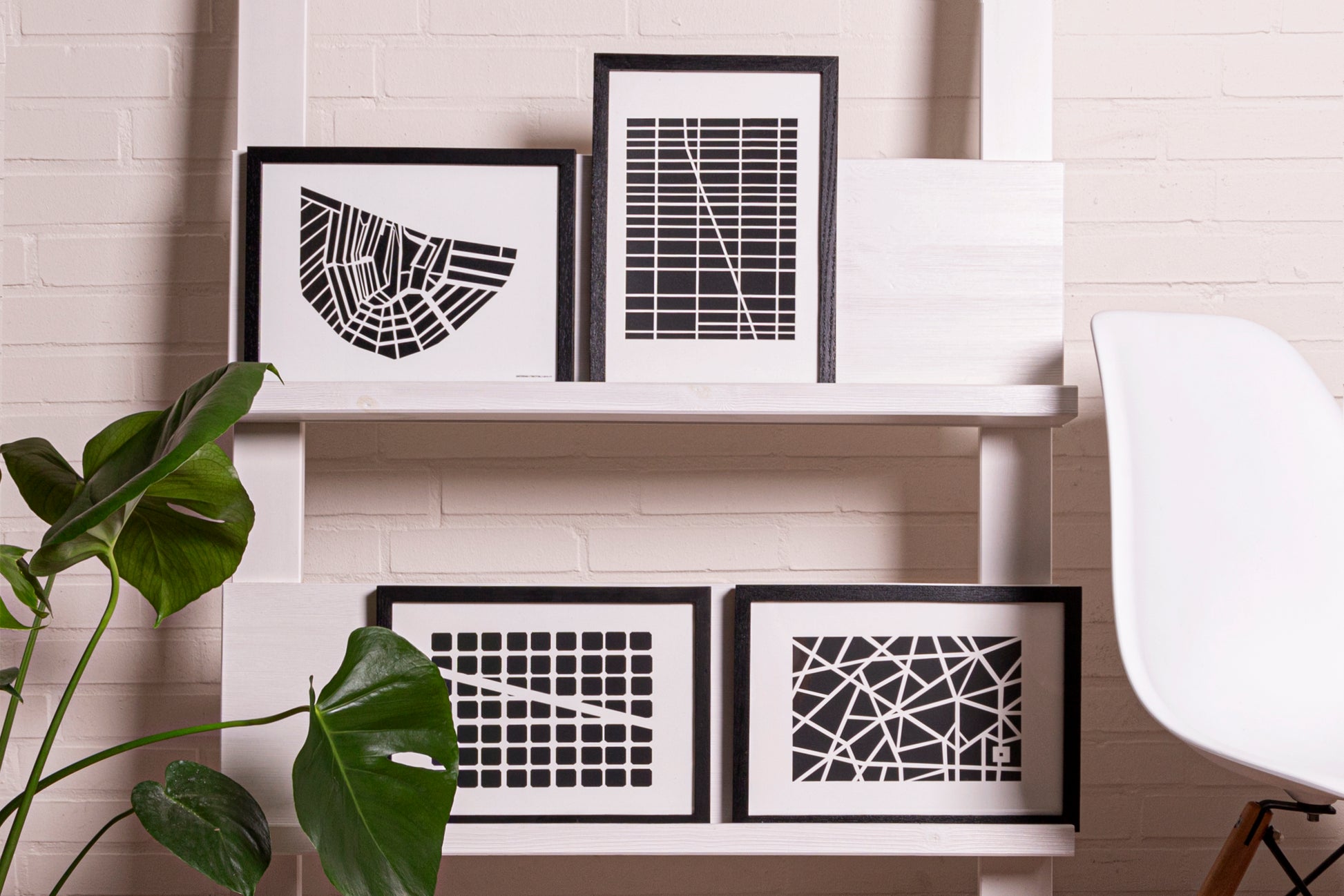 Black ink screenprinted design of Boulevard Haussmann Paris on a 21 by 29 cm off white paper (120g).
